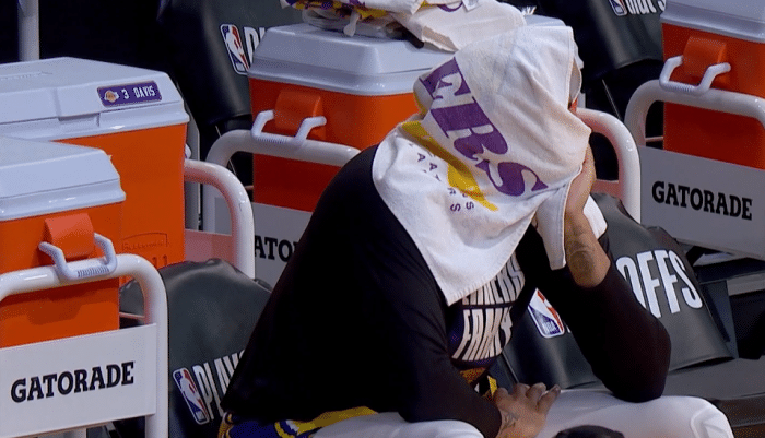 湖人半场落后21分!浓眉毛巾捂头,老詹神迹:季后赛5项数据历史前十!