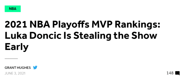 美媒评季后赛MVP排名!东契奇居首哈登第三 詹姆斯小卡仅获提名