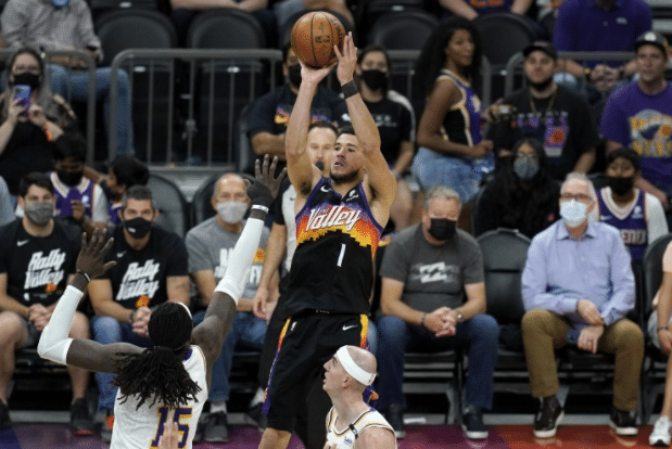 比赛打完的时候,布克16中11得到了33分,詹姆斯得到了14分2盖帽的数据,詹姆斯迎来里程碑,他完成2记盖帽,季后赛职业生涯盖帽数追平名宿穆托姆博排名历史第十位,他的季后赛生涯得分、篮板、助攻、抢断、盖帽(得分第1,篮板第6,助攻第3,抢断第1,盖帽第10)五项数据均排名历史前十,NBA历史上第一个五项数据均排名历史前十的球员。