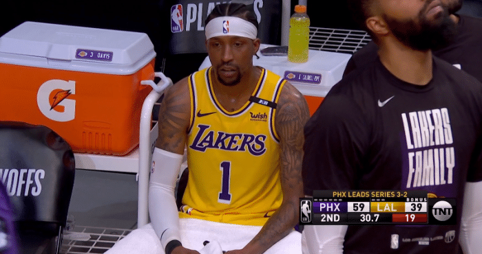 波普恶犯引热议,湖人和太阳总共3人吃到技术犯规;湖人半场41-62落后太阳21分,大比分2-3落后,G6又打得十分糟糕;浓眉带伤出战却提前离场,因腹股沟伤势只能坐在替补席,甚至用毛巾捂脸不敢看比赛;中场休息时,湖人官方宣布浓眉本场比赛不会回归,被迫伤退。