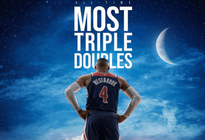 本赛季的威少再度达成赛季场均三双的成就,数据是22.2分11.5篮板和11.7次助攻,其中威少还是联盟助攻王,超越前队友哈登。对于威少来说,值得纪念的时刻是5月11日对阵老鹰,当时的威少拿下三双,职业生涯斩获第182次三双,正式超越“大O”奥斯卡-罗伯特森保持的三双历史纪录,成为NBA三双王,独一无二,打破了神迹,将自己写进了NBA的历史。
