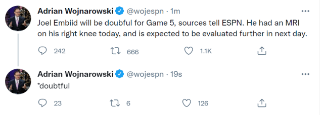 恩比德最新伤情出炉!名记:大概率不打G5,奇才有望再扳一城?