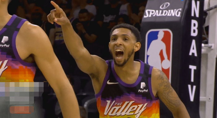 下半场的比赛湖人继续变阵,小加索尔和卡鲁索首发出场,布克跳投命中,小加索尔三分回应,克劳德三分命中,詹姆斯三分回应,施罗德连续投射不中,7次出手0命中,布里奇斯三分再中,分差再来到了32分,詹姆斯送妙传,施罗德空切上篮被帽,布克中投再中,湖人暂停,杨毅老师在解说的时候说道:施罗德这一战,把自己的身价打没了。对于湖人来说更为糟糕的是波普因左膝挫伤退赛,本场比赛不会回归。