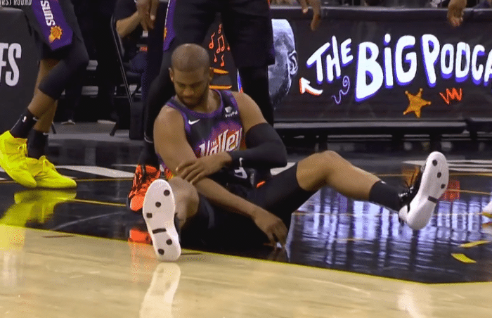 保罗受伤痛苦倒地,眼里含泪罚完球,队友安慰,球队起立致意