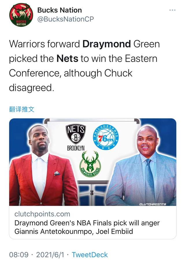 毒奶?追梦格林:篮网将是东部冠军,谁能击败他们?巴克利秒回:雄鹿