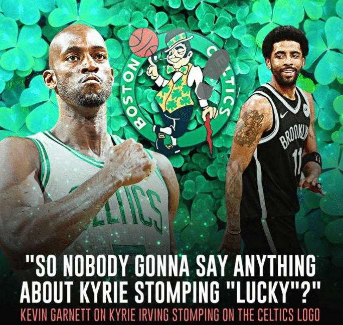 欧文踩踏绿军logo!加内特质问+大宝贝怒骂,杜兰特回应笑哭表情