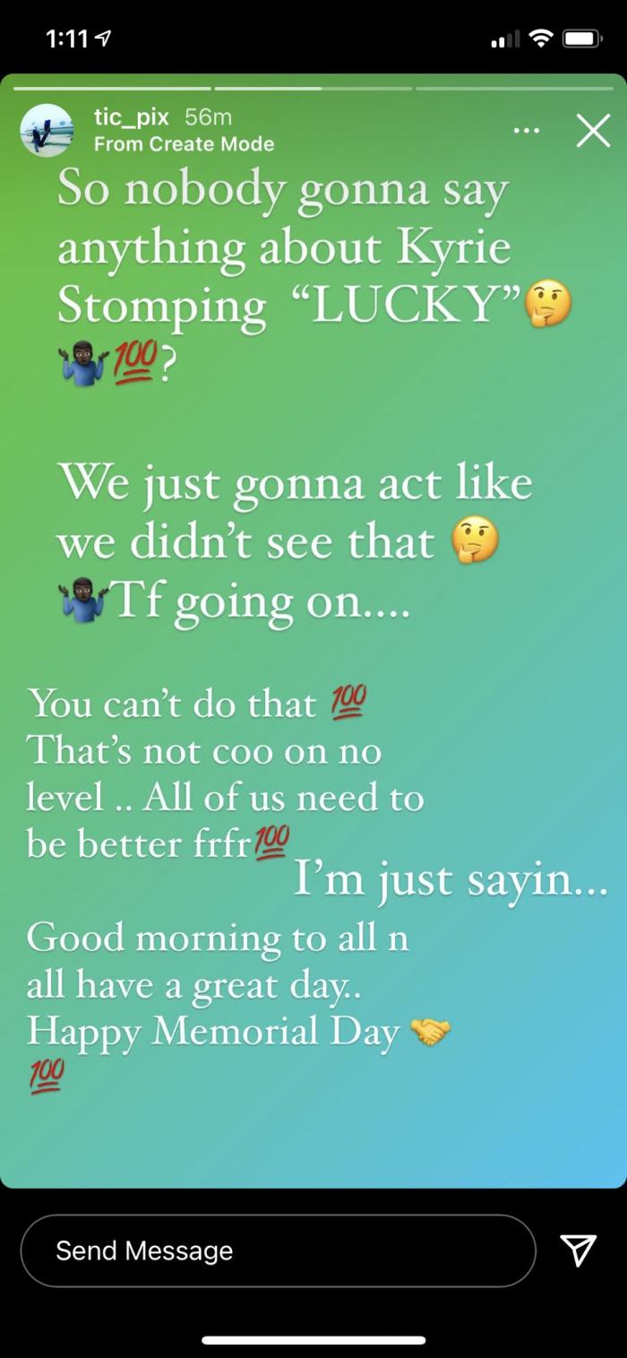 加内特质问:没有人想对欧文在logo上跺脚发表评论吗?难道我们就应该视而不见吗?不论出于什么原因,你都不该这么做,你这样做一点都不酷,我们大家要一起变得更好。当然,我只是随口吐槽。