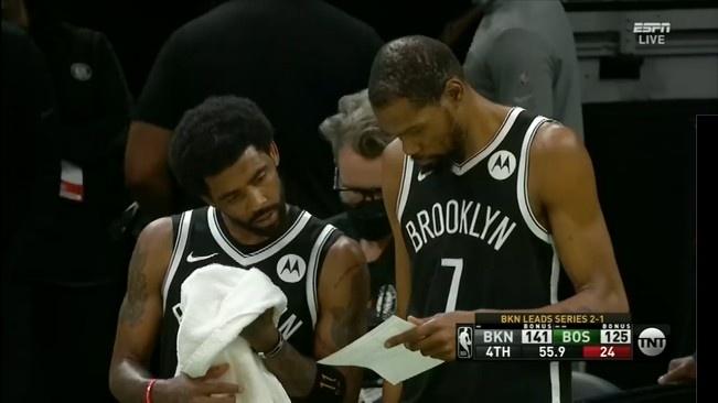 好吧,不得不佩服球迷的神脑洞,杜兰特和欧文为什么会看数据表呢?在赛后的采访中,杜兰特也给出了答案,原来杜兰特和欧文是在研究失误的数据,杜兰特表示,全队一共9次助攻,三弟出现了6次,所以我和欧文必须打的更加高效起来。