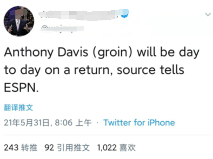 ESPN报道称,浓眉哥被列入了每日观察名单,G5出战状态是不明确了。