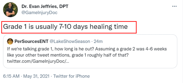 来源:24直播网05-31 14:5424直播网讯讯北京时间5月31日,湖人主场92-100不敌太阳,总比分来到2-2。浓眉左腹股沟拉伤退场,他的伤势需要进一步评估,但前景不容乐观。现在还不知道浓眉是什么级别的拉伤,但就算是最轻的一级拉伤,他预计也要休战一段时间。医学专家Evan Jeffries指出一级拉伤通常需要7-10天康复,除非浓眉带伤作战,否则他应该很难在首轮复出了。