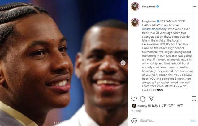 兄弟情深!詹姆斯发文祝安东尼生日快乐:为你感到骄傲,一直都是你