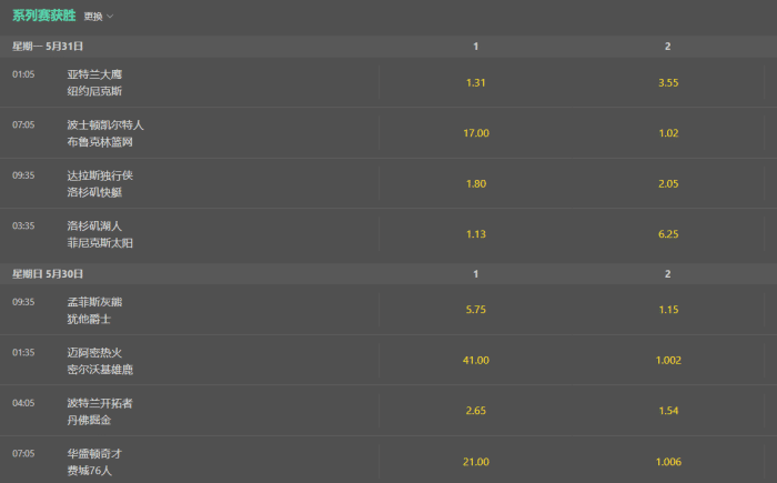 此外,费城、雄鹿、爵士和湖人,看起来已经可以准备好半决赛了。雄鹿已经3-0领先,而费城也已经2-0领先。爵士目前和对手打成1-1平,湖人也只是2-1领先太阳。但爵士实力明显强于灰熊,而太阳保罗受伤后基本已经没有抵抗之力。这4组对决,看起来悬念并不大了。