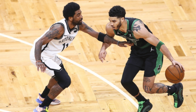 这场比赛篮网三巨头哈登和杜兰特表现出色,但欧文的发挥相对一般,杜兰特39分9板4断、哈登41分7板10助、欧文16分6板2助。欧文此役客场对阵老东家,只要他拿球,现场就会发出巨大的嘘声,而比赛最后时刻他的连续出手也都不中。比赛期间欧文第一节0分,第二节2分,追平个人季后赛生涯上半场的最低得分。