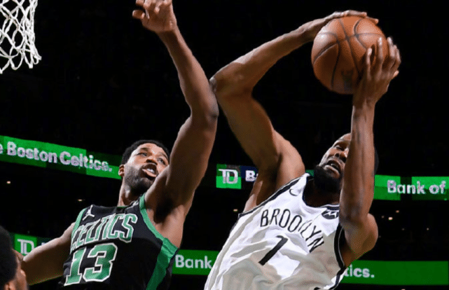 比赛第一个回合,篮网交给欧文出手,结果他一拿球,北岸花园便漫天嘘声。欧文三分不中,现场爆发巨大欢呼声。沃克突破得分,但篮网很快连续得分,哈登2+1乔哈里斯和杜兰特连中三分,哈登突破再中,篮网11-2开局!汤普森篮下得分,但篮网完全挡不住!哈登两罚全中,随后又是三分命中,乔哈里斯三分再来!19-4,凯尔特人很快被打崩了!