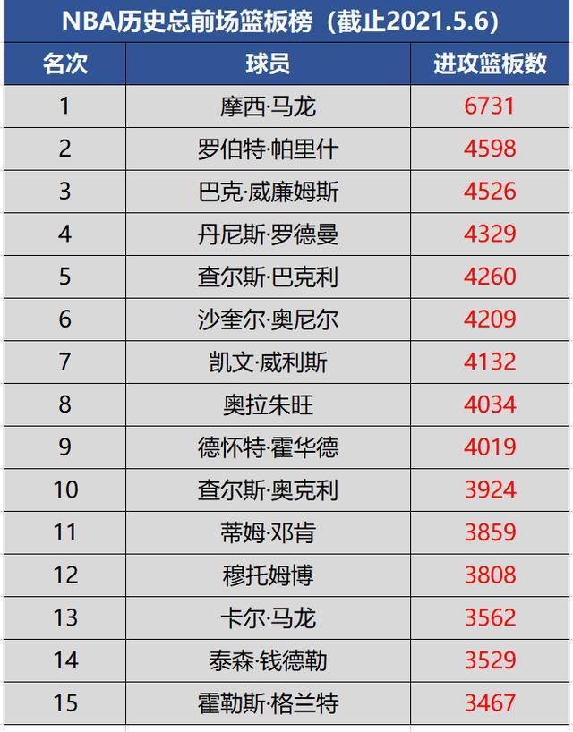 来源:24直播网05-27 20:0124直播网讯讯 nba历史篮板榜指的是在NBA比赛中,球员的篮板数总和NBA历史篮板数的总数,需要注意的是nba历史篮板榜计算的只是常规赛,其他赛事包括全明星赛都是不计数的。而且nba历史篮板榜只有一百名球员,篮板总数能够达到前一百名的球员才能登上榜单,所以能够在榜单看到的球员都是非常优秀的。