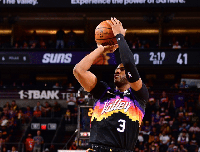 在比赛开始后,保罗先是被自己的队友撞倒出现肩部的伤情,这时候虽然身份是对手,但是詹姆斯还是很关心的上前询问保罗的伤病情况,并且安慰保罗。