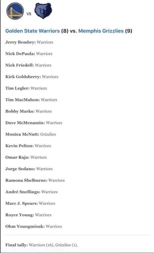 另外,ESPN专家说的话也不能全信,他们之前在预测附加赛的时候,有16个选择了勇士队,只有一个人选择了灰熊队,但比赛的结果打了他们的脸,而这次,不知道克里斯保罗和太阳队能否让ESPN所谓的专家们再度被打脸,让我们一起期待一下太阳队与湖人队之间的较量吧。