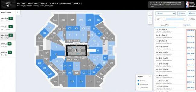 在季后赛门前两场的门票销售中,尼克斯的球迷最低价达到了1001美元,最高13200美元,可即便如此,他们前两场的30000张球票都卖空了。可是篮网队这边就有些尴尬了,他们门票的最低价是109美元,和尼克斯相差了将近10倍,可即便如此,他们两场比赛20000张票还剩下了将近200张球票。