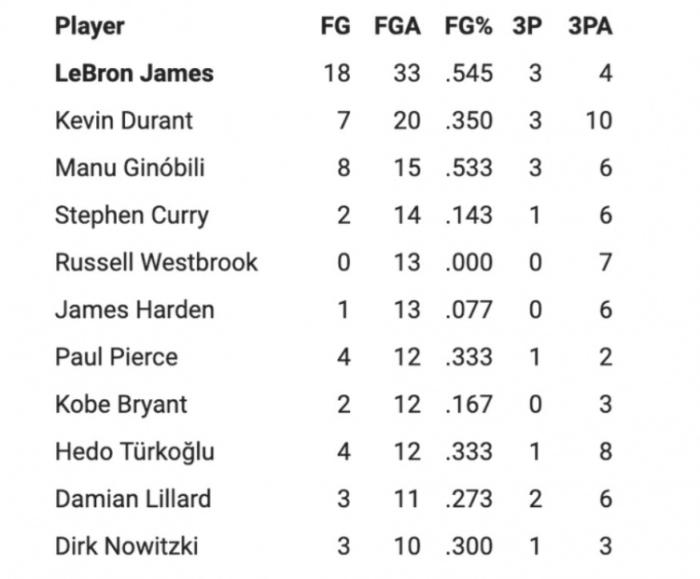 人们印象中老詹不是个擅长关键球的人,甚至很多人嘲讽他关键时刻会“甩锅”。但据统计,在季后赛比赛的最后一分钟,投进即反超的球,詹姆斯33投18中,命中率54.5%;其中三分球4中3。虽然这场球不是季后赛,但也是关键比赛!在他之后吉诺比利、杜兰特、库里威少、科比等人,所以真不要印象流!