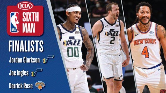 最佳第六人奖的3位候选人是爵士的克拉克森、爵士的英格尔斯、尼克斯的罗斯。
