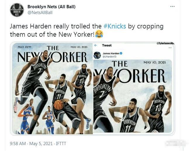 来源:24直播网05-21 10:3824直播网讯讯 谁是纽约城的主人?显然本赛季被认为是夺冠大热门的篮网队认为肯定是自己,此前《纽约客》为了表扬两支纽约球队本赛季的表现,制作了一版篮网队三巨头和尼克斯的兰德尔、巴雷特的漫画封面,不过哈登似乎并不认可尼克斯两个小伙子的地位,哈登发布的突破中尼克斯的两名球员被P掉,这也引发了大量尼克斯球迷的不满,哈登也受到了围攻,甚至有不少纽约球迷放话,纽约城只有一个主人,那就是尼克斯,即便是篮网队夺冠,纽约的球迷也不会为他们庆祝的。