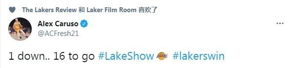 魔术师约翰逊发推对本场比赛进行了点评:“湖人今晚的进攻不够犀利,如果想击败太阳,我们需要打得更好。”而本场表现出色拿下14分的卡鲁索,赛后直接发推摊牌“拿下一场,还差十六场胜利#湖人秀#湖人胜利”而且在采访中还感谢了这场比赛的强度,有利于让湖人进入状态打太阳!