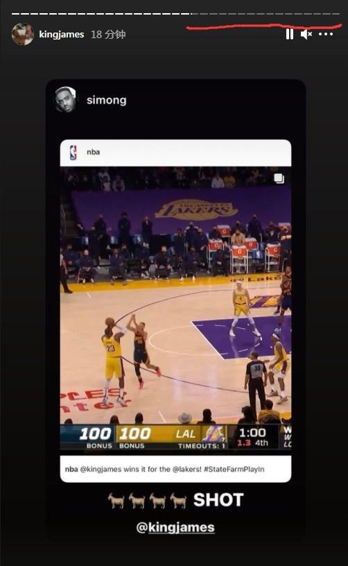 老詹赛后疯狂刷新社媒,先是晒出准绝杀那一球附文“Ballgame(决定比赛的一球)!#从阿克伦走出的孩子#詹姆斯帮#驱向伟大#过气的国王”随后短短十分钟内,他在动态里转发十多条“吹詹”ins。