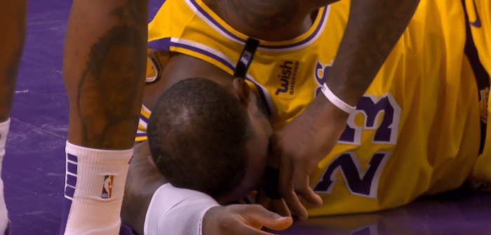 终场结束,詹姆斯左眼依旧不能完全睁开,当时湖人队医给他滴了一点滴眼液;赛后詹姆斯回应此次被格林犯规,他表示:我在比赛中花了很多时间,被格林的手指戳到眼睛后,我真的看到场上有三个篮筐。