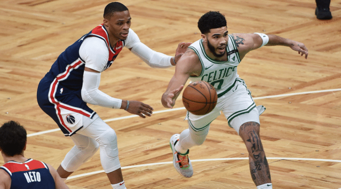 来源:24直播网05-19 14:5024直播网讯讯 北京时间5月19日,附加赛首日,凯尔特人依靠着塔图姆斩获附加赛历史上第一个50+的得分,在主场击败奇才,成功拿下常规赛第七名,季后赛首轮对手是篮网。奇才将会和击败黄蜂的步行者展开对决,争夺常规赛第八名。这场比赛首节凯尔特人占据优势取得领先,次节奇才逆袭反超比分,第三节凯尔特人在塔图姆爆发的情况下打出一波17-2开局强势领先,他单节轰下23分。末节鏖战,凯尔特人稳住局面,成功拿下胜利,锁定常规赛第七名。