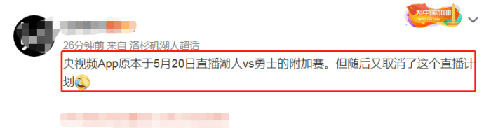 现在来看,央视已经决定不再转播湖人和勇士的附加赛,态度出现非常大的转变,而这场直播计划已经泡汤。