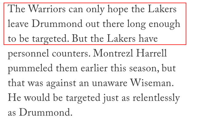 湖人一方,教练组应该也会纠结。他们希望能够用庄神的篮板能力来获得更多进攻回合数,但与此同时也会担心庄神在防守端被库里点名针对。