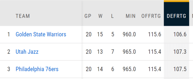 来源:24直播网05-18 17:5824直播网讯讯 勇士和湖人的附加赛,已经成为联盟目前的头号热点。提到湖人的优势,不少人会说是防守,湖人本赛季的防守效率排在联盟第一,但勇士也不是吃素的,他们的防守效率高居联盟第五。如果把数据范围缩小到最后20场比赛,那么勇士的防守比湖人还猛!