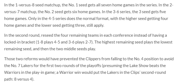 美媒认为这两种改革可以避免一些球队为季后赛排名而故意输球,对此你有什么想说的呢?