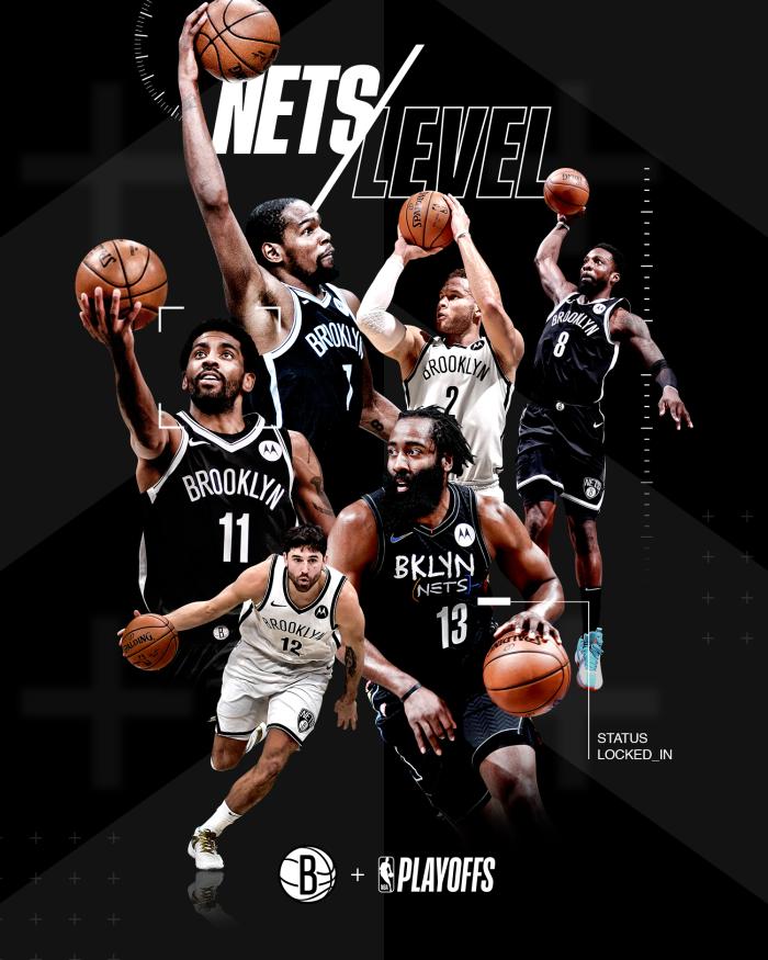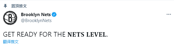 篮网官推晒季后赛冲冠海报,发推写道:迎接新的挑战,nets level