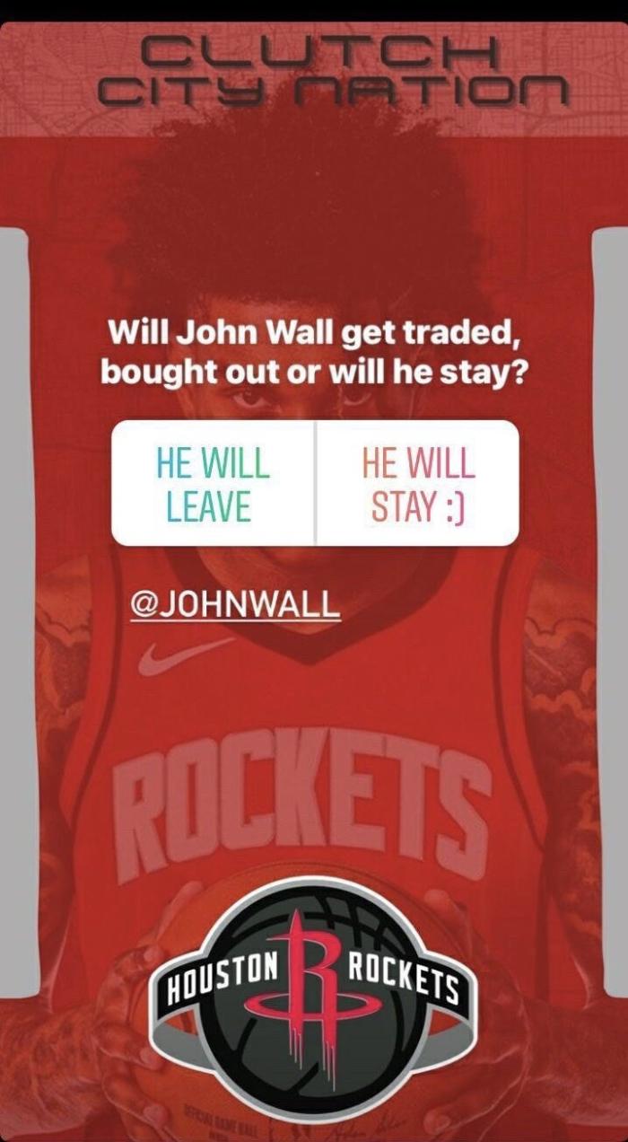 来源:24直播网05-16 15:0124直播网讯讯 北京时间5月16日,为Clutch City Nation的火箭媒体发起了一项投票,投票内容是:约翰-沃尔会被交易,买断还是会留下?