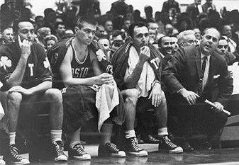 即将登上历史前台的凯尔特人队仍在经历个人与团队的无限背离。鲍勃·库西牢牢保持着助攻王,比尔·沙曼则有如下表演:86.7%的罚球命中率无人可比,43.8%的中投命中率高列第5,场均19.9分排在联盟第6、己队之首,于是他终于等来了官方认可:和库西、佩蒂特、阿里金和约翰斯顿一起入选了常规赛最佳阵容。除了后场双枪,ED·麦考利的场均得分也能排进联盟前10。同时有三名球员场均得分排前10,可以想象凯尔特人队的攻击力有多么骇人,但那时候他们根本不知道什么叫防守,场均得分笑傲联盟的同时,场均失分也是联盟最多。常规赛取得了39胜33负后,凯尔特人在季后赛首轮被民族队淘汰,草草收场。