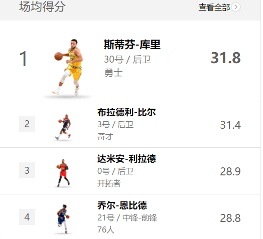根据最新的消息显示,此前在比赛中扭伤的比尔将继续缺席,联想到奇才还剩下2场比赛,同时他们接近锁定附加赛席位,前八没有希望,所以比尔很有可能安心养伤,等附加赛再复出。这样库里目前场均31.8分,比尔场均31.4分,库里总分榜也是第一名,同时下一场他很有可能轮休,然后等最后和灰熊直接决战,所以库里锁定得分王,已经基本上没有悬念。