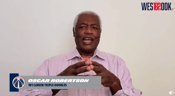 在韦少达成三双后,三双次数排在第二的罗伯特森,录制视频向他送出祝福。韦少超越大O,按照常理,罗伯特森会感到一丝沮丧,毕竟他的纪录被破了,但大O却大方送出祝福,可见,韦少确实是一位很受喜欢和尊敬的球星,他在NBA的人缘几乎无人能比,不是他有多强,而是韦少是一位真性情的球员。