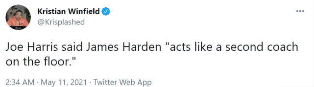 赛季至今,篮网射手乔-哈里斯收到过大量来自哈登的助攻,他肯定深有体会。在采访中,哈里斯也谈到了哈登的重要性。他说:“哈登就像球场上的第二个教练。对我们而言,他的指挥能力和对比赛的掌控力非常重要。”