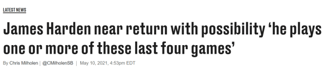 篮网好消息!哈登已参加高强度训练+分组对抗,名记:最早战马刺复出