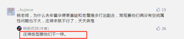 而杨毅老师在社媒中表示,关键庄神类型和霍华德,麦基等人不一样。说到了关键所在,庄神是属于地板流球员,他的抢篮板能力一流,但不太会吃饼,顶多就是蓝领。更重要的是,湖人巨星浓眉和庄神根本没有化学反应,沃格尔让两人一起出场,太勉强了。现在的湖人不仅仅是伤病问题,在排兵布阵上,也时常被人诟病,如果继续重用德拉蒙德,湖人可能会因此付出代价。