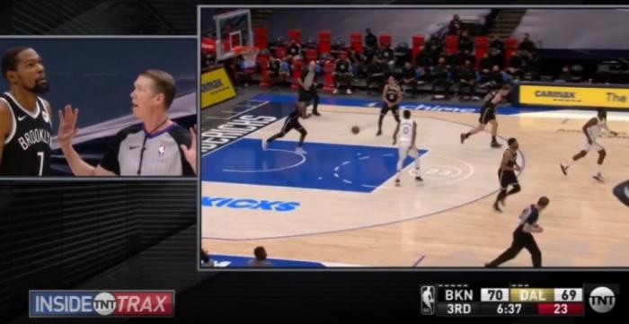 在这场比赛的死球阶段,杜兰特主动来到了裁判艾德马洛伊的身边讨论进攻球员夹手臂造犯规的问题。