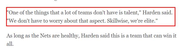 知名美媒《体育画报》认为,哈登能以多种方式帮助这支篮网队,如果他不能在季后赛里保持健康,篮网的这个赛季注定将失望落幕。