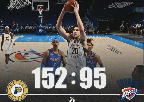 步行者疯狂大屠杀一心只想摆烂的雷霆,没有加时情况下全队狂轰刷新队史单场得分纪录的152分,整整暴揍了对面57分,也创造本赛季最大输球分差。