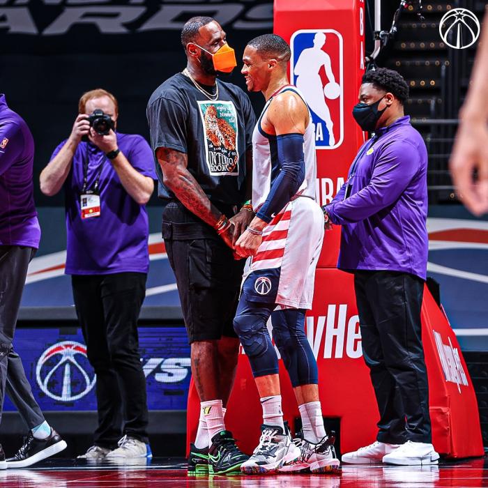 另外要说的是,詹姆斯和韦少两大球星同框出镜,紧紧握手、寒暄聊天,两人有说有笑十分开心,脸上都挂着笑容。