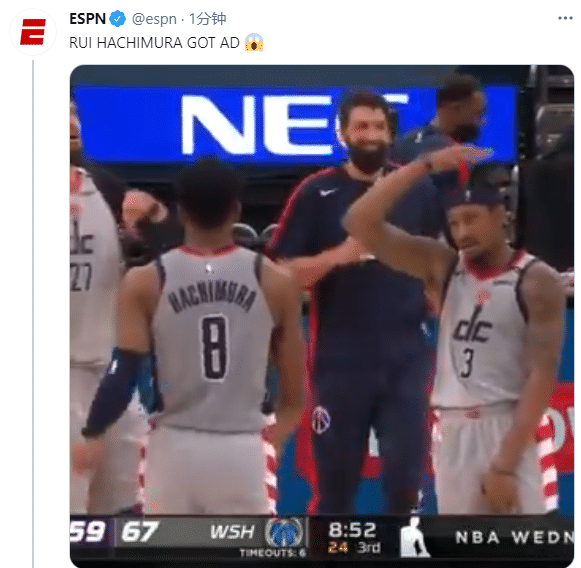 热议日本天才隔扣浓眉!比尔拍头疯狂庆祝,美媒转发+奇才官方庆祝