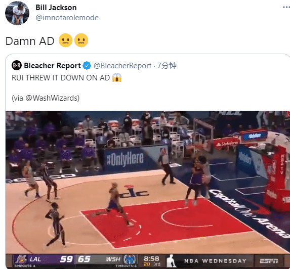 Damn AD一词冲上推特热搜引热议,权威媒体《露天看台》以及其他美媒都转发这一幕,无数球迷沸腾了;湖人和奇才上半场展开对攻大战,然而第三节湖人进攻停滞,瞬间被扩大分差,这比赛突然花掉吗?尤其是比尔再次投进三分,韦少冲上球场大笑庆祝。