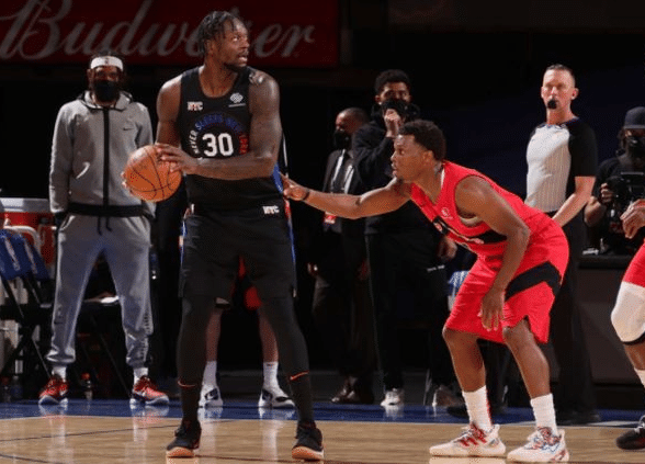 球队核心兰德尔太全面了!他身材高大,体型强壮,在攻防两端都极具统治力。兰德尔控球娴熟,自己不仅可以持球发起进攻,也可以高位策应为队友创造得分机会。半场落地战,兰德尔也可以通过低位单打改变对方防守策略。因为身体极具爆发力,兰德尔不仅可以在对抗中将球打进,也可以在防守中连续送给对方麻辣火锅。本赛季,兰德尔场均可以得到23.9分10.4篮板6助攻的全面数据。从之前的科比助手到现在的纽约之王,兰德尔之后还会给我们带来更多的惊喜!