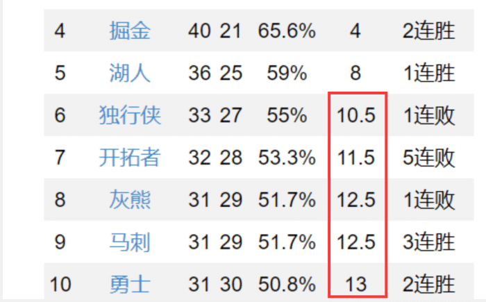 首先,独行侠在追赶第5的湖人,但今天他们输球了,而卫冕冠军客场击败了魔术,本来追到只差1.5个胜场,现在又回到2.5个胜场的差距!也就是说,短时间内,湖人第5的位置是比较安全的!