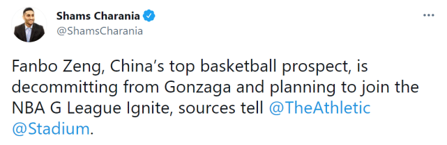 来源:24直播网04-25 16:5724直播网讯讯 北京时间4月25日,据The Athletic名记查拉尼亚报道,中国顶级年轻球员曾凡博将不会前往冈萨加大学,而是计划加入NBA发展联盟(G联赛)的点燃队。